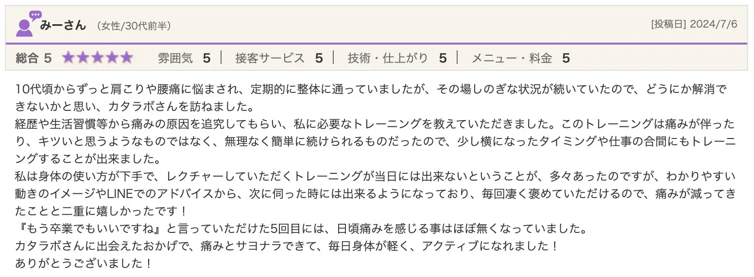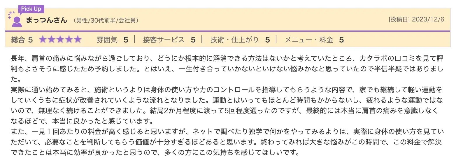 「整体に通っているけど肩こりが改善しない」「マッサージを受けるとその時は楽になるけど、すぐ元に戻ってしまう」