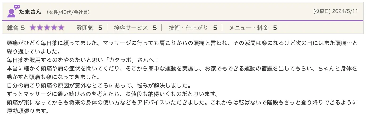 - 慢性的に肩こり、首こりに悩まされ痛み止めも効かない