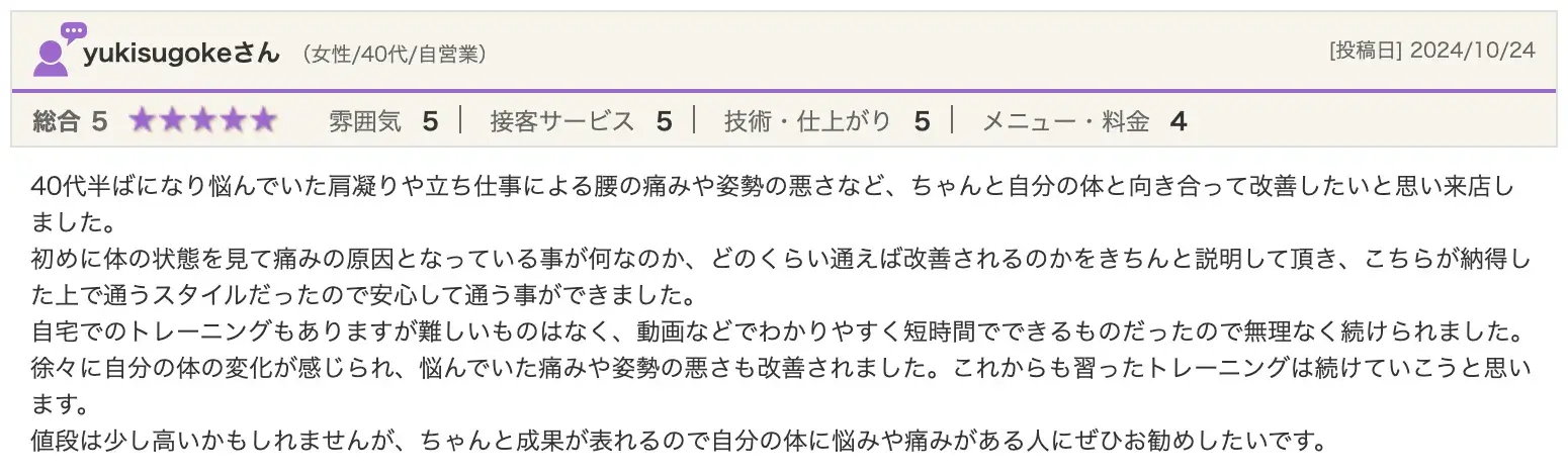 筋肉の硬さ、身体の可動域、日々の仕事内容など、個々の状態を細かく考慮して、負担が少なく効果的な施術プランを考案します。