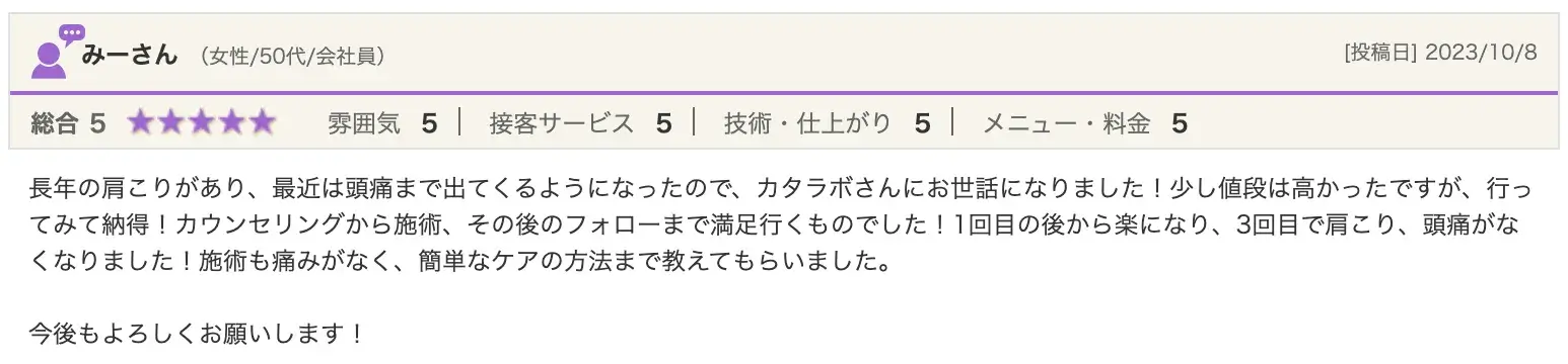 お客さんの喜びの声