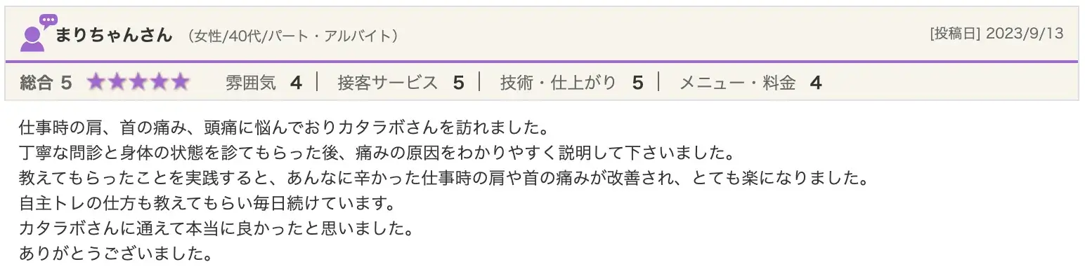 施術後も、肩や首に無駄な力が入らないようにサポートし、肩こりがない状態を維持できるよう、丁寧に施術を進めていきます。